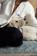 The bold blue base and blooming white flower graphic bring a calm, expressive vibe, while the signature quote “Tie your style, baby” anchors it to the spirit of Sleeves Studios — open, easy, and full of life.